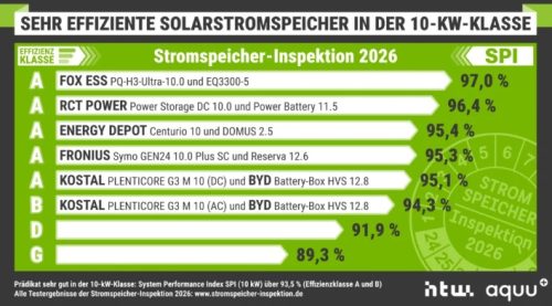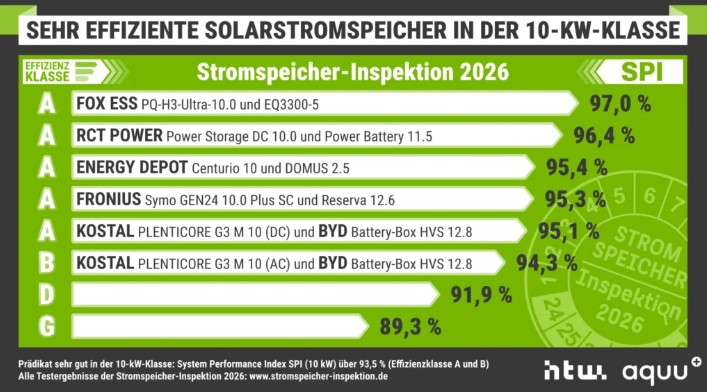 Studie Stromspeicher-Inspektion 2026, kterou každoročně publikuje renomovaná HTW Berlin, patří mezi nejuznávanější nezávislá srovnání bateriových úložišť pro fotovoltaiku v Evropě. Letošní výsledky přinesly výraznou zprávu pro celý sektor energetiky – bateriový systém FOX ESS dosáhl nejlepšího výsledku v testu účinnosti.