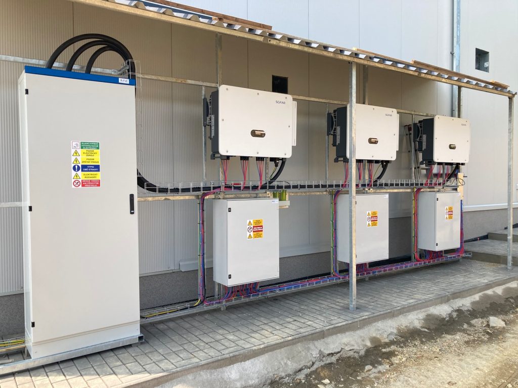 – Bateriové úložiště: SOFAR Solar – Power Magic s výkonem 125 kW a kapacitou 258 kWh