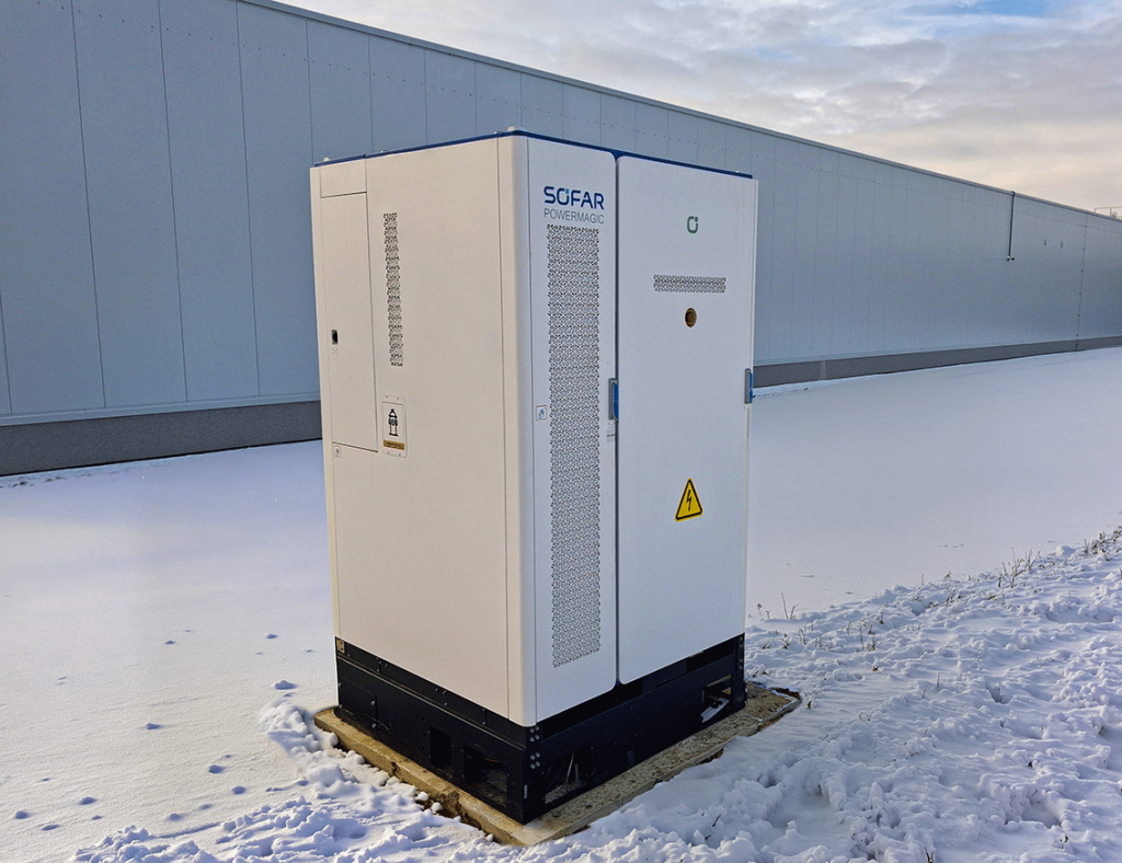 Instalovaný systém tvoří jedna jednotka Power Magic SOFAR Solar s výkonem 125 kW a kapacitou 258 kWh.