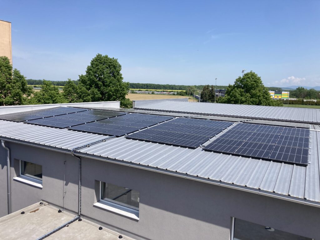 • Rozložení instalace:Střecha I.: 66 panelů, orientace jižní, zátěžový systém K2 S Dome 10°Střecha II.: 60 panelů, orientace jižní, zátěžový systém K2 S Dome 10°Střecha III. (sklad): 90 panelů, orientace východ/západ, systém K2 SpeedRail