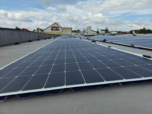 V roce 2023 jsme realizovali fotovoltaickou elektrárnu o výkonu 69,66 kWp pro prodejnu COOP v Kyjově. Projekt byl technicky specifický kvůli statickým omezením střechy, a proto jsme zvolili lehké flexibilní panely.
